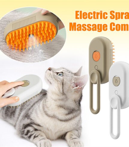 3-in-1 Cat Steam Brush for Shedding – Electric Pet Grooming Comb with Spray Mist