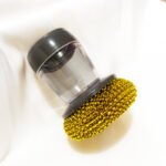 - 【 Built-In Soap Dispenser】— Effortlessly tackle tough grease and grime with the Kitchen Soap Press Dispensing Palm Brush. Simply press the top button to release the right amount of dish soap, making cleaning pots, pans, and sinks more effective and efficient.